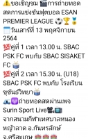 ขอเชิญร่วมชมการแ่ข่งขันฟุตบอล ESAN PREMIER LEAGUE วันเสาร์ที่ 13 พฤศจิกายน 2564 เริ่มเวลา 13.00 น.ณ สนามกีฬา เทศบาลหนองหญ้าลาด อ.กันทรลักษ์ จังหวัดศรีสะเกษ |